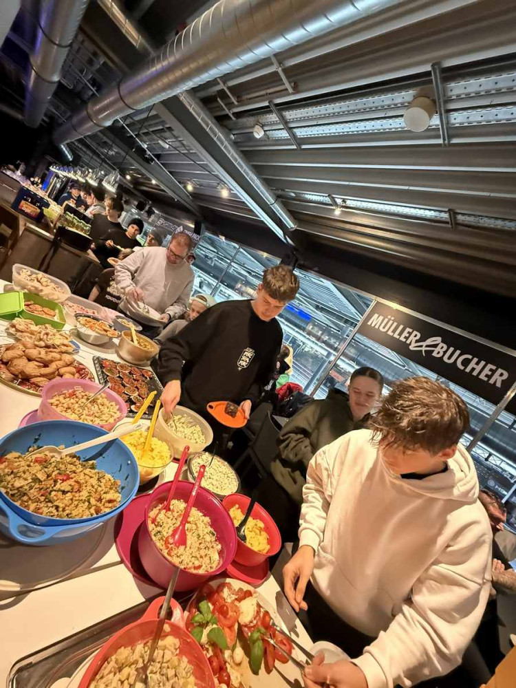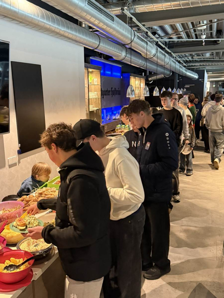 Los ging es mit einem geneinsamen Training. Im Anschluss versammelten sich alle mit Eltern und Geschwistern im VIP Raum. Das Buffet war reich gedeckt mit diversen Salaten, Fleischkäse, Fingerfood, Kuchen und Muffins. Und auch der Weihnachtsmann hatte viele Präsente für die Kinder, Trainer und Betreuer*innen in seinem Sack. 🎅